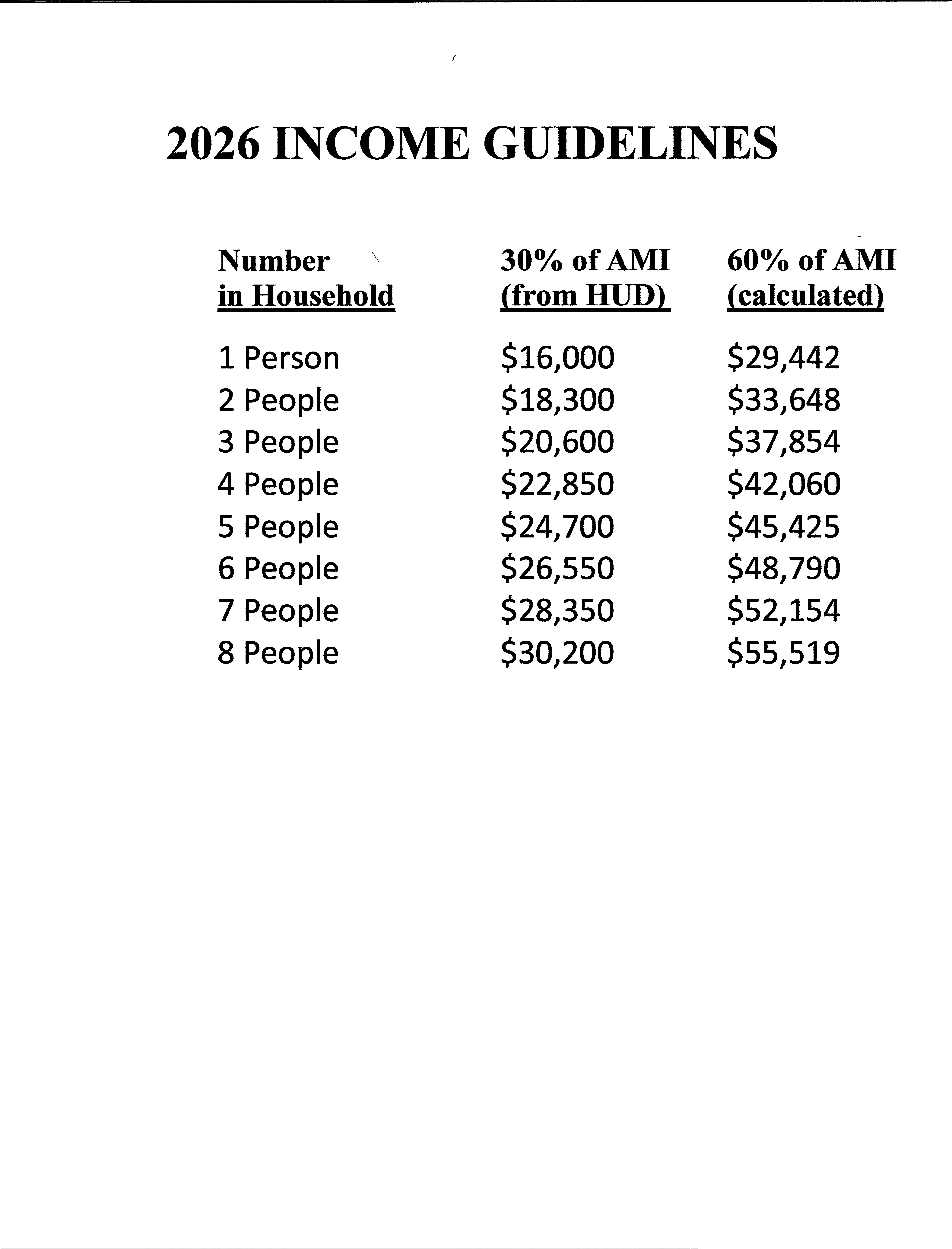 2. Income must be within the income guidelines for eligibility (See income guidelines below)
